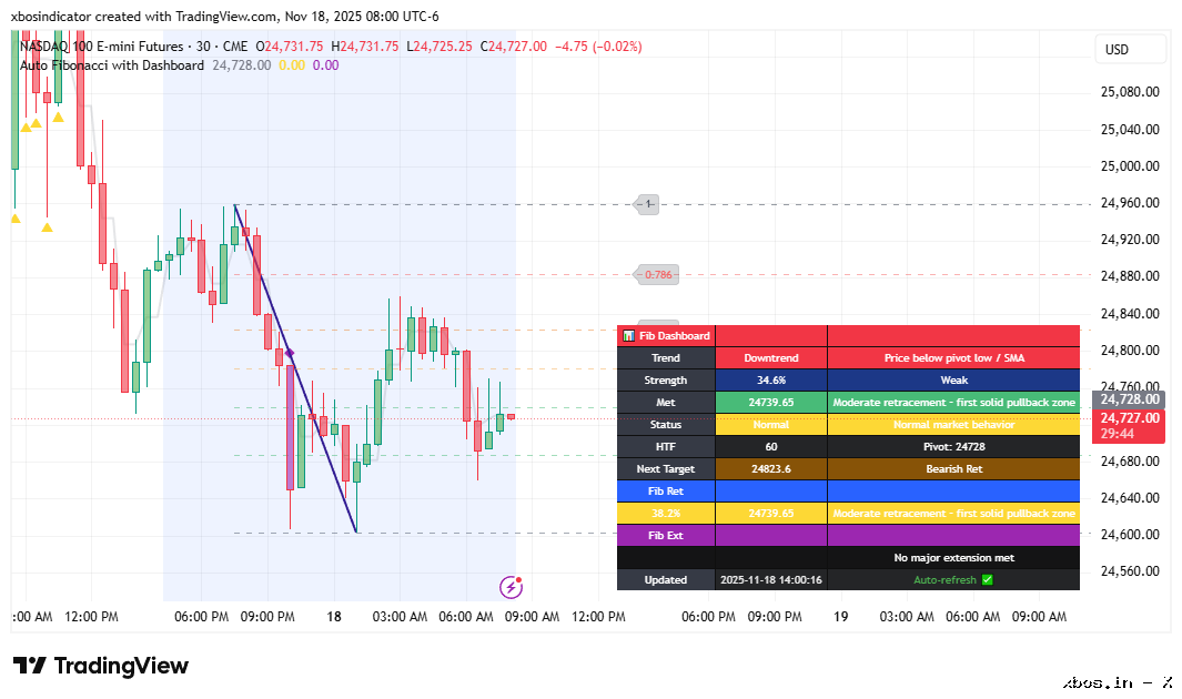 The dashboard summarizes the current trend, the last Fibonacci level touched, and whether the structure is breaking or behaving normally. Traders can also set alerts on specific levels to be notified when price approaches or crosses them, ensuring timely action.